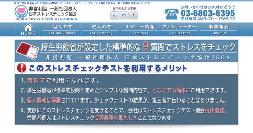 「一般社団法人 日本ストレスチェック協会」 サイト