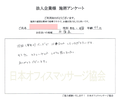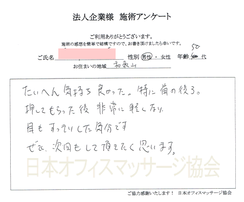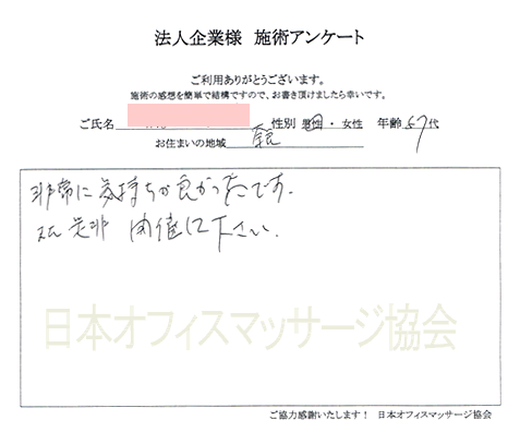 「 たいへん気持ち良かった。特に首の後ろ。」